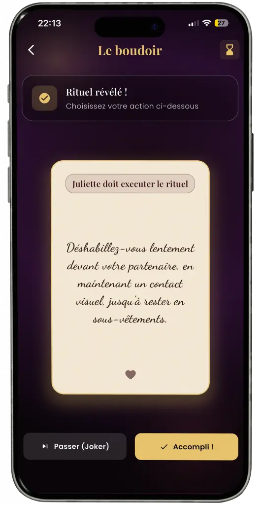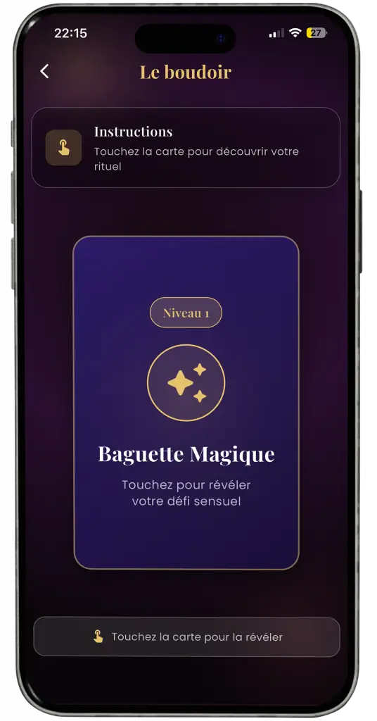 Accédez au boudoir pour toucher la carte magique qui va révéler le rituel à exécuter par votre partenaire devant vous.
